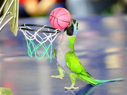 Parrot plays basketball