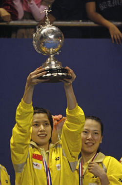 Top-ranked Xie Xingfang took an easy win over Indonesia's first singles Maria Kristin 21-8, 21-15 while China's doubles pair Yang Wei/Zhang Jiewen swept past Lilyana Natsir/Vita Marissa 21-15, 19-21, 12-16 in the women's doubles. China's second singles, Lu Lan crushed Pia Zebadiah of Indonesia 21-12, 21-10 to seal the match 3-0 over Indonesia. China has lifted the trophy 11 times. Japan is second, has won it five times, followed by Indonesia and United States, each with three Cups. In a post-match press briefing, China's head coach Li Yongbo said he was happy to see that more and more players' abilities have been improved, especially the Indonesia's women players. "We should be happy, that the level of badminton is rising all across the world. Indonesia's two singles and doubles pair Lilyana and Vita are very good players," he said. He said China will continue its winning ways but said it is encouraging that other countries have started to improve and offer stiffer resistance. Asked if the strong earthquake in China has affected the players psychologically, Lu Lan said they really worried about the earthquake victims. "We all have donated money to the quake-hit areas and when we go back home, we will do more to help them," she said. Meanwhile, Indonesia's pair Lilyana and Vita said that they did their utmost in the battle against China, "but unfortunately, we lost. We hope to have chance to beat them in the Beijing Olympic Games." |