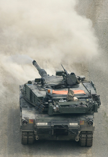 Updated: 2008-05-22 17:31 ![]() A US M1 tank fires during a live fire gunnery exercise with the South Korean army at the US army's Rodriguez range in Pocheon, about 70 km (43 miles) northeast of Seoul, May 22, 2008. [Agencies]