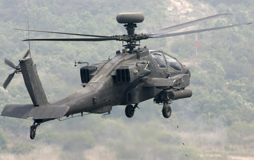 Updated: 2008-05-22 17:31 ![]() A US Army Apache helicopter fires a weapon system during a live fire gunnery exercise with the South Korean army at the US army's Rodriguez range in Pocheon, about 70 km (43 miles) northeast of Seoul, May 22, 2008. [Agencies]