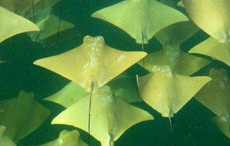 Updated: 2008-06-25 10:45 ![]() A picture released recently on British newspaper Daily Mail shows thousands of cow-nosed stingrays on their twice yearly migration in the Gulf of Mexico in July last year. Gliding silently under the seas these magnificent stingrays resemble a golden cloud stirring in the ocean. [Agencies]