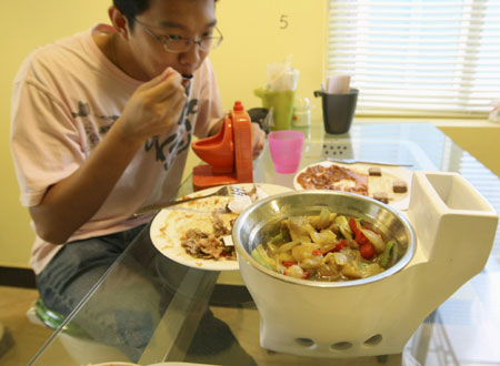 Diners eat at a toilet-themed restaurant in Hangzhou