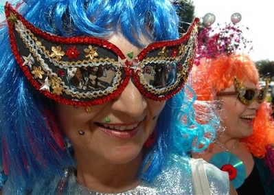 The Sweet Leilani's greet visitors to the 2008 UFO Festival at the Roswell Convention and Civic Center in Roswell, N.M. on Thursday morning, July 3, 2008. [Agencies]