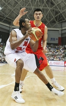 Updated: 2008-07-20 11:54 ![]() Angola's Joaquim Gomes (10) aims the ball to the basket as China's Yao Ming attempts to block him during their match at the Stankovic Cup international basketball tournament Saturday, July 19, 2008 in Hangzhou. Russia, Angola, Serbia and China compete a warm-up match for the Beijign Summer Olympic Games. Angola won 72-71. [Agencies]