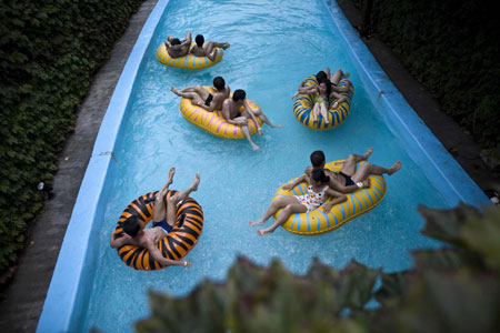 Updated: 2008-07-20 10:09 Visitors play in an artificial river at Dino Beach in Shanghai July 19, 2008. Dino beach, also known as the "Fake Beach", claims to be one of the biggest water parks in Asia with sand imported from beaches in South China, and has attractions such as wave machines. [Agencies] |