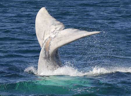 A rare albino Southern Right Whale calf at West Australia's Flinder's Bay is seen in this handout photo obtained August 26, 2008. [Agenices]