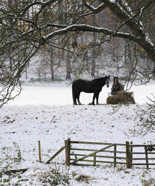 Horses graze in a snow covered field in Helmsley, northern England November 23, 2008. [Agencies]