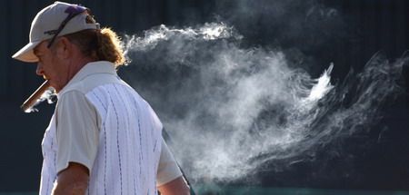 Updated: 2008-12-03 16:47 Spain's Miguel Angel Jimenez smokes a cigar as he walks on the practice tee with other members of the European Ryder Cup team during practice for the 37th Ryder Cup Championship at the Valhalla Golf Club in Louisville, Kentucky September 17, 2008. [Agencies] |