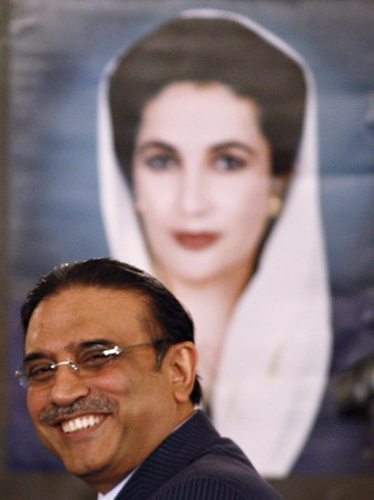 Updated: 2008-12-03 17:32 Pakistan's President Asif Ali Zardari smiles at a news conference after his swearing-in ceremony in Islamabad September 9, 2008. Zardari swept an election last week when members of the two-chamber parliament and four provincial assemblies voted on a replacement for former army chief Pervez Musharraf, who resigned last month nine years after taking power in a coup. [Agencies] |