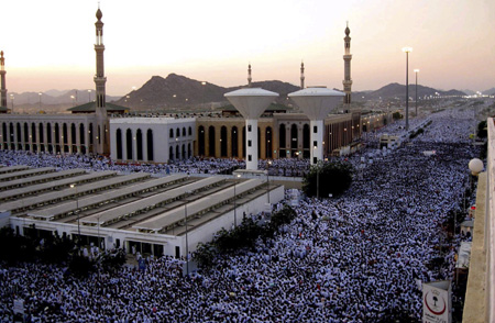 Muslim pilgrims leave the plains of Arafat outside the holy city of Mecca December 7, 2008. More than two million Muslims began the haj pilgrimage on Saturday, heading to a tent camp outside Mecca to follow the route Prophet Mohammad took 14 centuries ago. [Agencies]