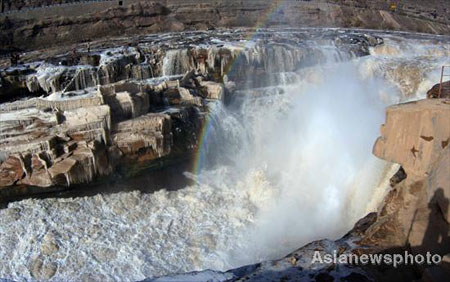 Updated: 2008-12-08 10:45 Hukou waterfall is frozen due to temperature dropping, turning its splashing water beads into ice of various shapes - a great attraction to winter tourists. Picture taken on December 7, 2008. [Asianewsphoto] |