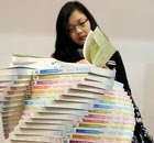 Students from Wuhan Institute of Shipbuilding Technology is doing push-up at a job fair held by Foxconn quasi-Precision Mold Co Ltd, in Wuhan, Hubei province, on March 23, 2010. Boys who complete 20 push-ups are considered qualified, 30 excellence, and 10 for girls. The physical strength capacity test is made up of push-ups, tracing irregular and continuous grooved lines on paper with eyes blindfolded and three-minute beads stringing. According to the company, mold work requires physical strength and precision, so employees of the company are supposed to start 5,000-meter run at 6:30 am every day and then finish 50 push-ups. [Photo/CFP] |