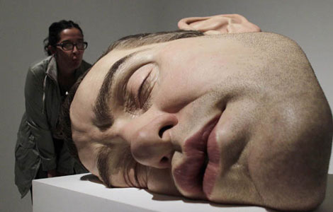 A sculpture entitled "Mask II" by Australian sculptor Ron Mueck is seen at the San Ildefonso Museum in Mexico City September 20, 2011. [Photo/Agencies] |