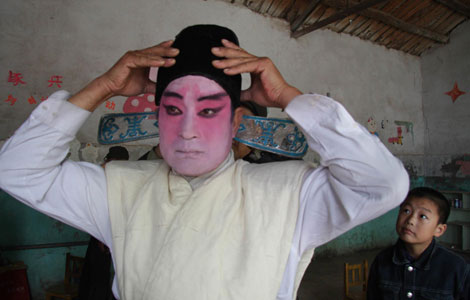 Ethnic Dong men play the Sheng, a traditional Chinese music instrument, as they march with Dong women along a road during a Kam Grand Choir gathering in Tongguan village of Liping county, Southwest China's Guizhou province Oct 17, 2011. According to the local government, Tongguan village is the birthplace of the Kam Grand Choir, which is a traditional polyphonic choral performance of the Dong ethnic group. The villagers in Tongguan keep a routine for choir practise, dressed in their traditional costumes, whenever they are free from farming. Practice usually occurs twice a week during the day, and almost every evening. [Photo/Agencies]