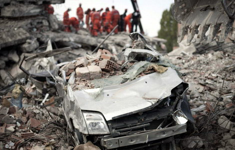 Melek Halitogullari is comforted by her father as she waits for news on her brother, who is trapped under debris, after an earthquake in Ercis, near the eastern Turkish city of Van October 27, 2011.[Photo/Agencies]