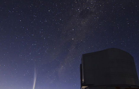 Comet Lovejoy is seen over ESO's Paranal Observatory in Cerro Paranal Dec 22, 2011. Comet Lovejoy was first discovered on Nov 27 by Australian amateur astronomer Terry Lovejoy and was classified as a Kreutz sungrazer, with its orbit taking it very close to the Sun, passing a mere 140,000 kilometres from the Sun's surface. Picture taken Dec 22, 2011. [Photo/Agencies]