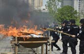 A carriage of a Chinese subway train lies at a port in Buenos Aires, the capital of Argentina on April 18, 2012. Two sets of chinese trains were delivered to the subway company in the city on the same day. [Photo/Xinhua] |