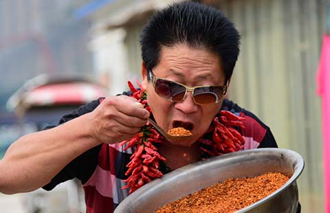 Runners attempt to evade a steer at the entrance to the bullring during the first running of the bulls of the San Fermin festival in Pamplona July 7, 2012. One person was gored and four others injured in a run by Dolores Aguirre fighting bulls that lasted two minutes and fifty-two seconds, according to local media. Steers are used to guide the bulls and round up any that are divided from the pack of six. [Photo/Agencies]