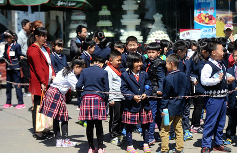 A student points a toy gun at his friend as they play during the "Culture of Lawfulness" campaign at a school in Ciudad Juarez Oct 24, 2012. High school students launched an anti-violence campaign in schools at the border city, where children exchanged their toy guns for school supplies, local media reported.[Photo/Agencies]