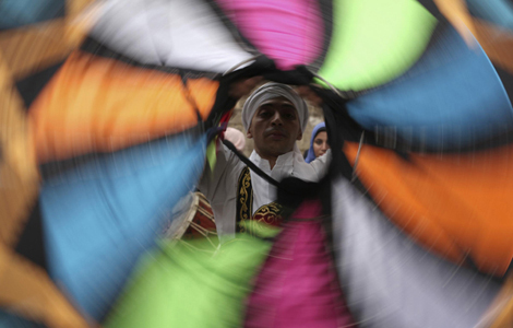 A dog wearing sunglasses sits at Plaza Independencia Square in Montevideo, Dec 18, 2012. [Photo/Agencies]
