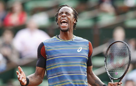 Peng Shuai of China hits a return to Camila Giorgi of Italy during their women's singles match at the French Open tennis tournament at the Roland Garros stadium in Paris May 29, 2013. Peng Shuai defeated Camila Giorgi 6-4, 6-2 at the first round. [Photo/Agencies]