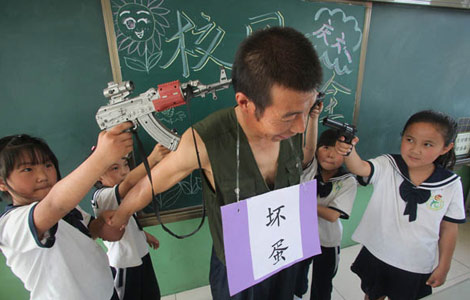 Children enjoy a performance celebrating Children's Day at a primary school in Lhasa, Southwest China's Tibet autonomous region, on May 30, 2013. [Photo by Li Zhou/ Asianewsphoto] |