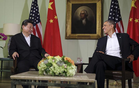 Chinese President Xi Jinping (L) and US President Barack Obama meet the press after their meeting at the Annenberg Retreat, California, the United States, June 7, 2013.[Photo/Xinhua]