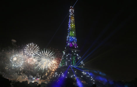Rubber Duck by Dutch conceptual artist Florentijn Hofman floats at Hong Kong's Victoria Harbour, with the island skyline looms at the background May 2, 2013.?[Photo/Agencies]