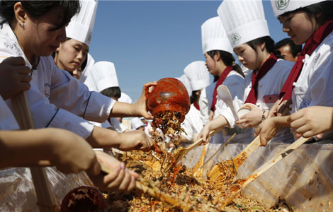 Zhang Linpeng (Top) of Guangzhou Evergrande vies for the ball during the 2013 AFC Champions League final between Guangzhou Evergrande and FC Seoul in Seoul, South Korea, on Oct 26, 2013. The match ended in a 2-2 draw. [Photo/Xinhua]