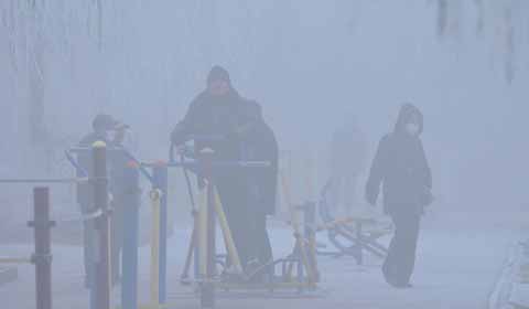 Nikolay Petshak carries the Olympic torch as he leads a group of members of local winter swimming clubs during the Sochi 2014 Winter Olympic torch relay in the waters of the Yenisei River in Russia's Siberian city of Krasnoyarsk, November 26, 2013. 30 members of winter swimming clubs took part in the relay, with the water temperature at about 5 degrees Celsius (41 degrees Fahrenheit) and the air temperature at about minus 8 degrees Celsius (17.6 degrees Fahrenheit). [Photo/icpress.cn]