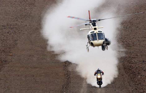 Spain's Marc Coma rides his KTM motorcycle during the 12th stage of the Dakar Rally 2014, from El Salvador to La Serena January 17, 2014. [Photo/Agencies]