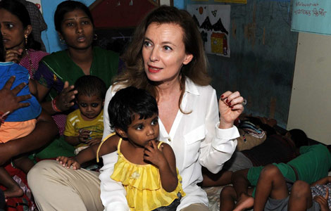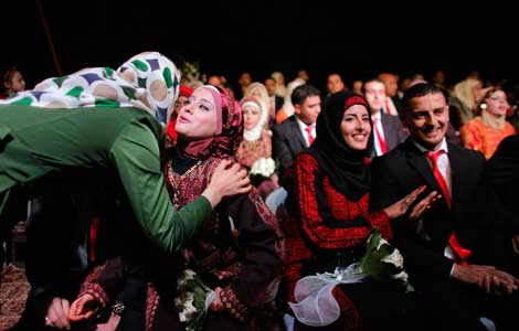 First lady Michelle Obama gives two thumbs up to US Army Ranger Sgt. First Class Cory Remsburg, injured while serving in Afghanistan, as she arrives prior to President Barack Obama's State of the Union speech on Capitol Hill in Washington Jan 28, 2014. [Photo/Agencies]