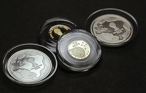 FIFA 2014 World Cup commemorative cupronickel coins are pictured in Casa da Moeda do Brazil (Brazilian Mint) during its production in Rio de Janeiro January 8, 2014. [Photo/Agencies]