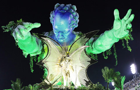 A reveller from the Imperatriz Leopoldinense samba school participates in the annual Carnival parade in Rio de Janeiro's Sambadrome, March 4, 2014. [Photo/Agencies]