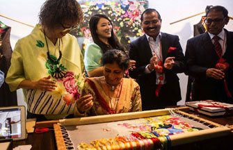 About 300 miniature Terracotta Warriors, made from Belgian chocolate and wearing Santa hats are displayed at a hotel in Xi'an. Bakers came up with the idea of combining Chinese history with Christmas decoration. [Photo/IC] |