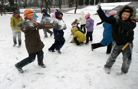 Updated: 2009-02-19 14:01 Chinese children play with snowballs after a winter snowfall in Dalian, northeast China's Liaoning Province, Feb. 18, 2009. Rain and snowfall have helped ease a severe drought in northern and eastern China. (Xinhua/Lu Guozhong) |