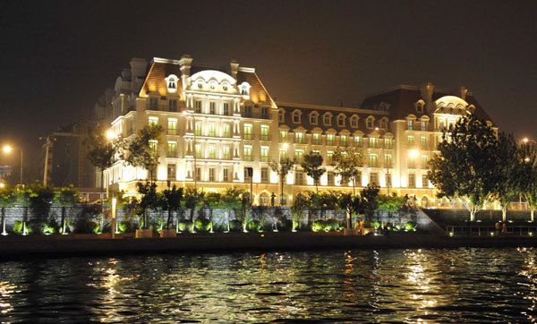 Buildings along Haihe River are lit up at night to welcome the Summer Davos Forum. [Photo/Xinhua]