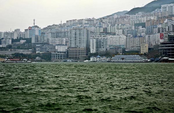 The Yangtze River is seen in the port of Badong, Central China's Hubei province, Oct 25, 2010. [Photo/Xinhua] |