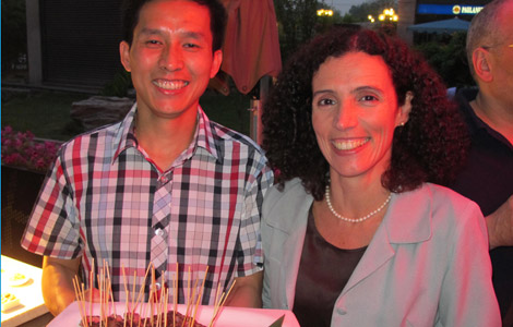 A lotus blooms from the water of West Lake in Hangzhou, East China's Zhejiang province, June 6, 2012. More than 400 different species of lotus are on display during an exhibition that began on Wednesday. [Photo/Xinhua]