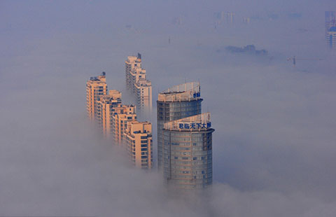 The twin towers of the Oriental Gate, a new landmark building, were merged together at the top earlier this year. It is expected to become the highest building in Suzhou. |