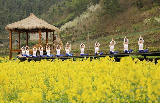 Coming out of the dark and narrow caves, visitors are impressed with the vast grassland amid surrounding lofty mountains. In spring and summer the grassland is blanketed with brightly colored wild flowers with towering bluestones in the distance.