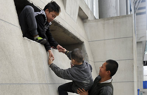 Archeologists demonstrate restoring a desiccated corpse at an archaeology experience museum in Chengdu, capital city of Southwest China's Sichuan province, Dec 2, 2013. The museum, the first of its kind in China, uses simulation 3D techniques and interactive software to demonstrate archaeology work. [Photo/icpress.cn]