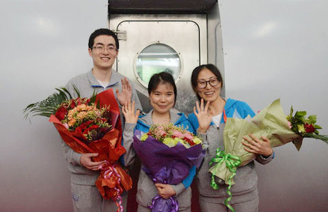 Wei Guirong drives his granddaughters from kindergarten on his home-made three-wheeled vehicle in Luorong county, Liuzhou city of Guangxi Zhuang autonomous region, on May 19.