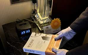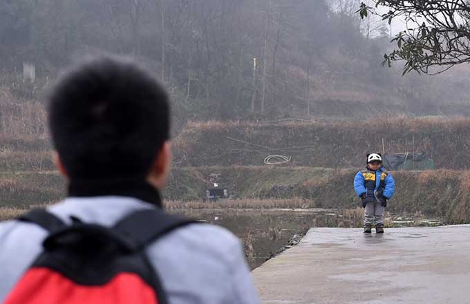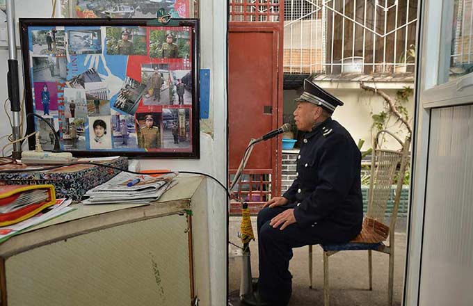 A villager talks about his paintings to journalists at the settlement site for Chenyang village on Jan 17. [Photo by Yang Yang/China Daily] |