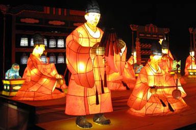 Primary school student Zhang Jimin showed an intense interest in a large and rather bizarre lantern featuring a snake wrapped round a dragon with the shell of a tortoise — all brightly colored and illuminated from within.