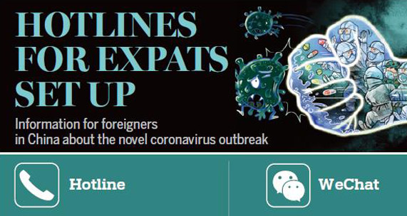 For expats in Hubei province, a 24-hour hotline 027-87122256 has been set up. Tips on virus prevention are also available on the National Immigration Administration's WeChat account: NIANEWS.