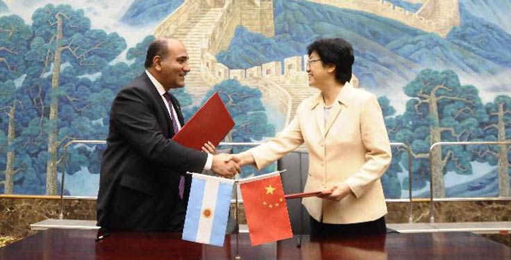 Li Bin, minister of the National Health and Family Planning Commission, met with Juan Luis Manzur, Argentina's health minister in Beijing, on August 28.