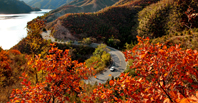 III. Red autumn leaves along the lake