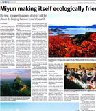 Miyun mining interest in green tourismBeijing's Miyun county, the place that supplies much of the capital with its drinking water, is hoping to make the most of its natural landscape of lakes and mountains and develop into a tourist getaway.