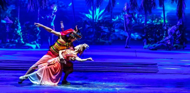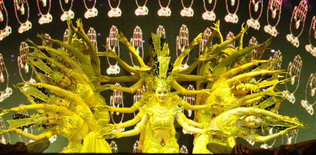 The artists performs a show called Thousand-hand Avalokitesvara in Sanya, Hainan province.